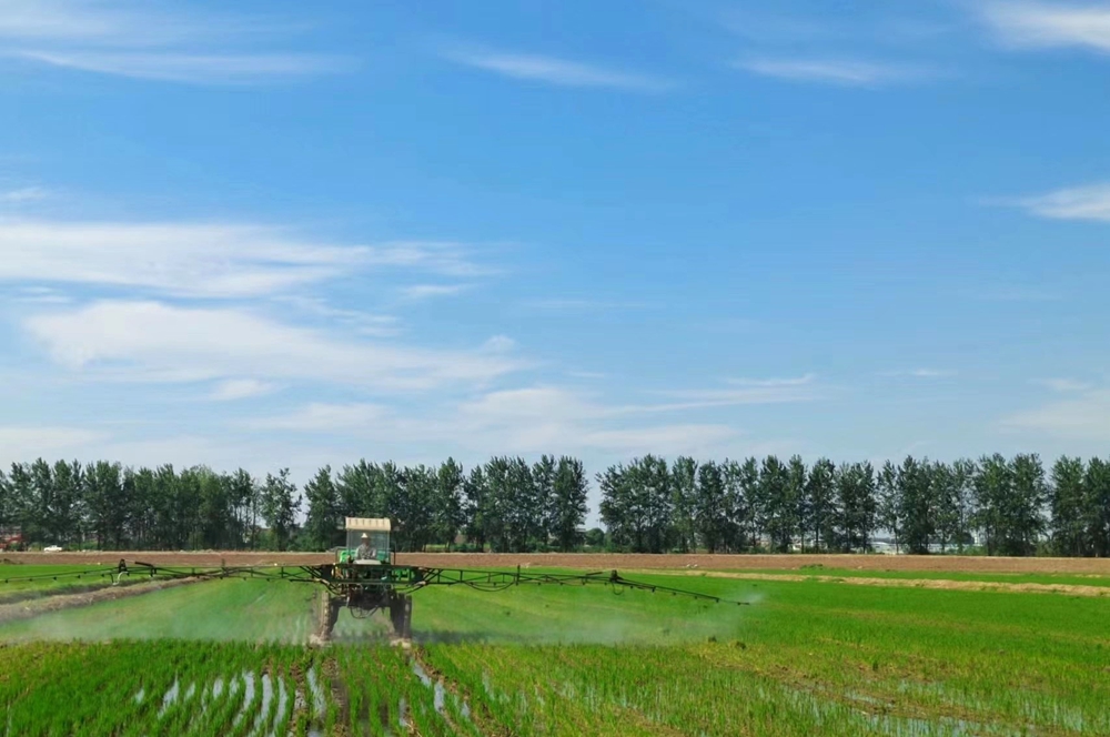 7月7日早上8点,天气晴好,方邱湖农场公司生产二部抢抓有利时机,针对水稻分蘖期生长需要,采用无人机对水稻田撒施分蘖肥,并及时追施生物酶叶面肥。同时,公司还积极做好玉米田管工作,利用大型植保机对4705亩玉米田进行草、虫害化除工作。随着秋粮进入夏管关键期,垦区各农场公司抢抓农时,抓细田间管理,全力落实好各项技术措施,确保在地作物得到精准高效管护,为秋粮丰产和全年粮食丰收奠定基础。