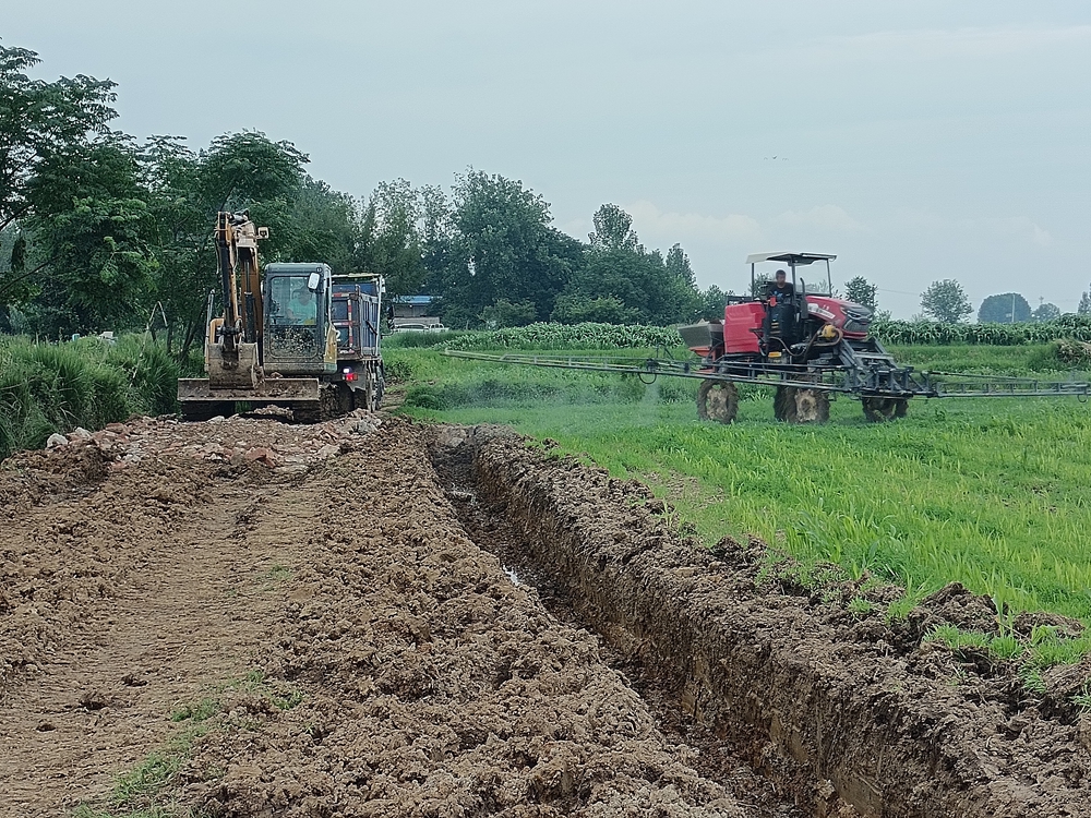 7月6日,位于滁州市凤阳县大溪河镇指王村的大溪河地块,安省农业服务有限公司针对7月初降水造成部分地块的积水问题,正在组织机械、人工,开沟放水排涝降渍,确保在地作物安全生长。入梅以来,面对持续降雨,安徽农垦所属二级企业迅速组织抢排农田积水,排除内涝,同时抢抓农时,抓细田间管理,全力落实好各项夏管技术措施,确保在地作物得到精准高效管护,为秋粮丰产和全年粮食丰收奠定基础。