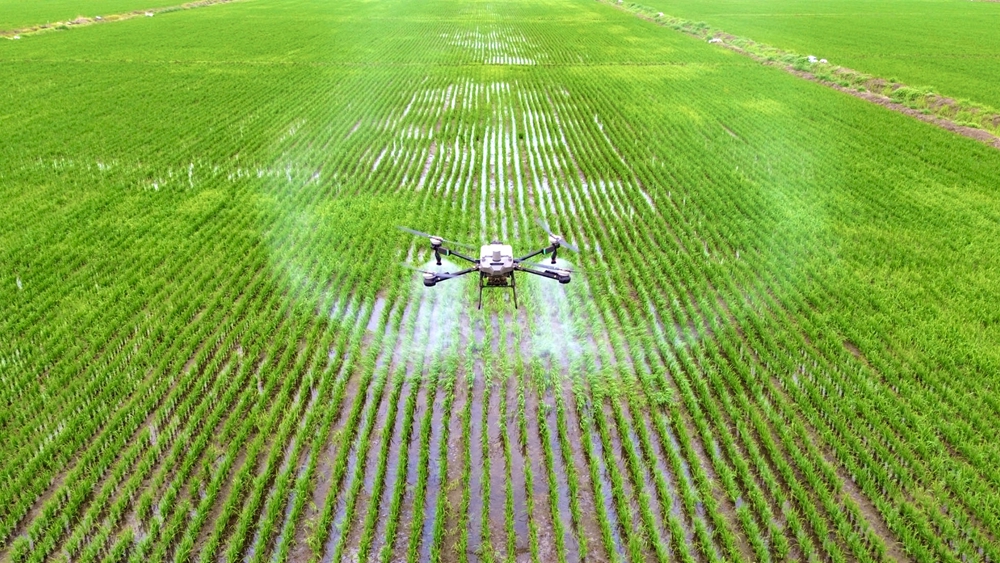 7月7日,大圹圩农场公司圩内开展植保作业场景。沈鹏翔 摄