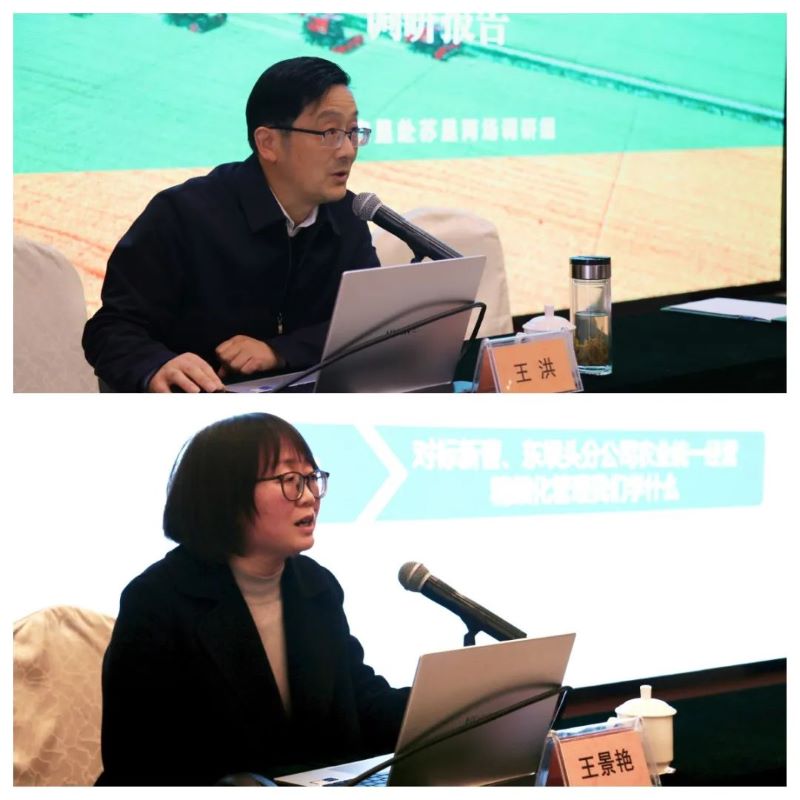 宣讲报告会分专题报告和案例宣讲两个阶段进行。在专题报告阶段,皖垦赴苏垦调研组组长、集团党委宣传部部长王洪,调研组副组长、皖垦种业副总经理王景艳宣讲了江苏农垦新曹、东坝头两场一体化全产业链经营的成功经验和亮点做法,对比分析了皖垦和苏垦之间差异,阐释了安徽农垦推进统一经营工作的重要性和必要性。