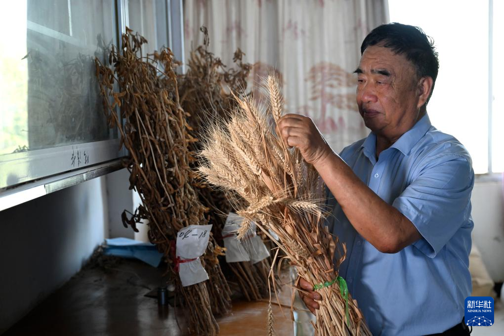 7月20日,徐淙祥在家中察看用于研究的小麦样品。