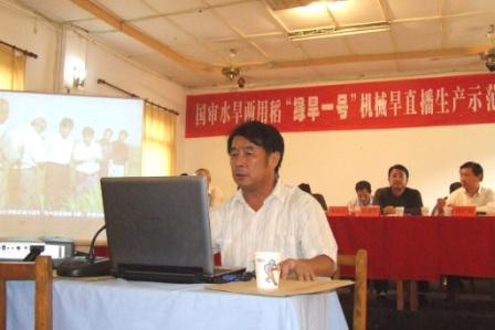 经安徽省农科院绿色食品研究所和安徽省首席水稻育种专家朱启升研究员授权,安徽农垦龙亢种业有限公司独占“绿旱一号”全国生产经营权。作为生产单位,公司负责人在会上汇报了“绿旱一号”的市场营销方案。