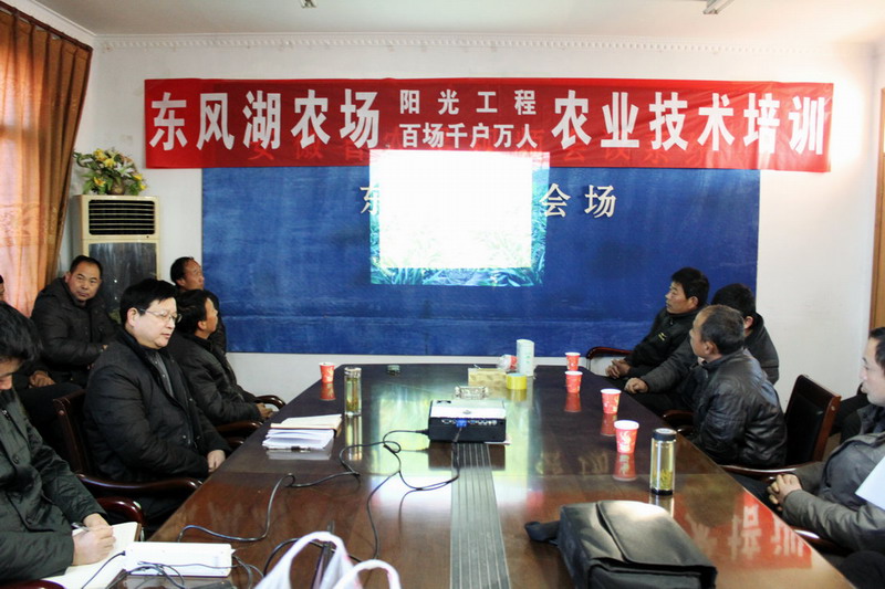 东风湖农场秋冬连旱对在地小麦生长造成了很大影响,为助力午季丰产丰收,在抓好水利冬修的同时,近日举办了2014年首期“阳光工程、百场千户万人”农技培训班,为全场科技示范户集体“充电”。