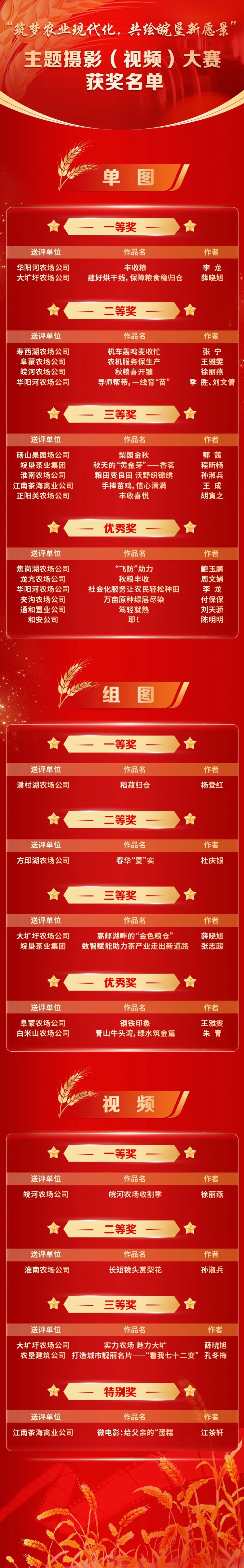 “筑梦农业现代化 共绘皖垦新愿景”主题摄影(短视频)获奖安徽农垦集团公布!