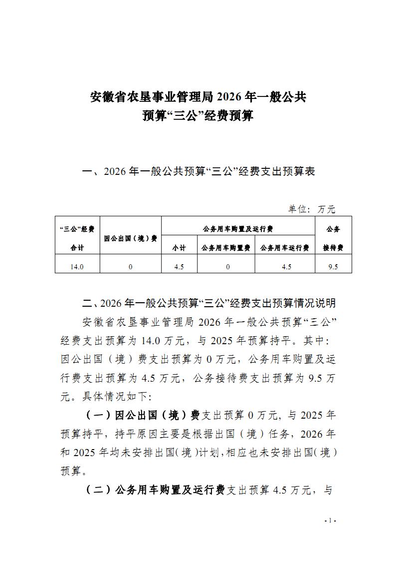 安徽农垦集团:安徽省农垦事业管理局2026年一般公共预算“三公”经费预算.pdf